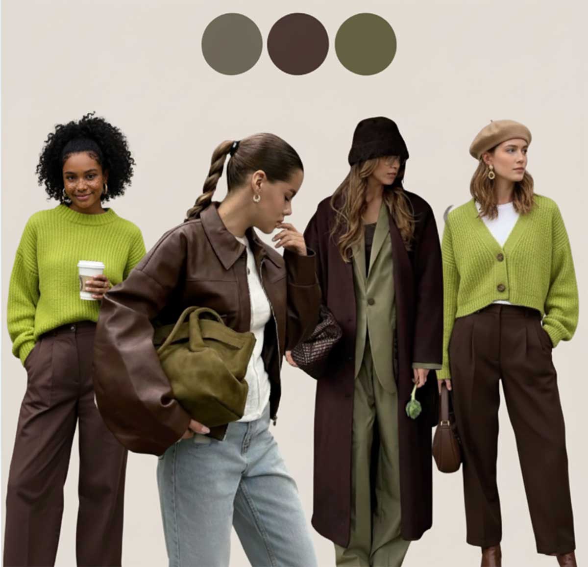 Il verde bosco e il marrone espresso sono entrambi colori profondi che richiamano la natura autunnale: il risultato è un’armonia immediata e sorprendentemente versatile.