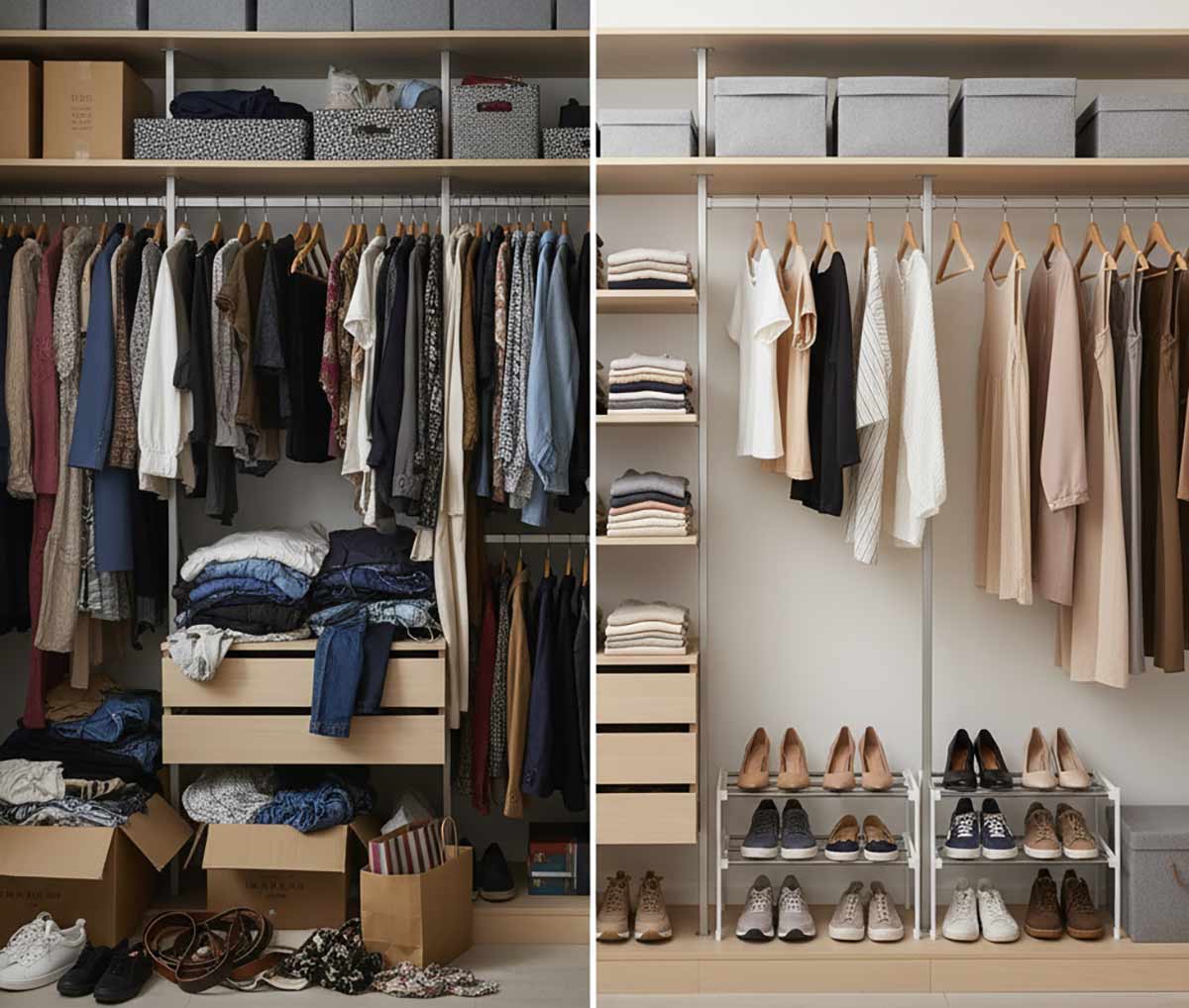 Il disordine diventa un rumore di fondo che ci distrae e ci confonde. Cosรฌ, comprare nuovi capi sembra la via piรน semplice, dร l’illusione di un nuovo inizio.