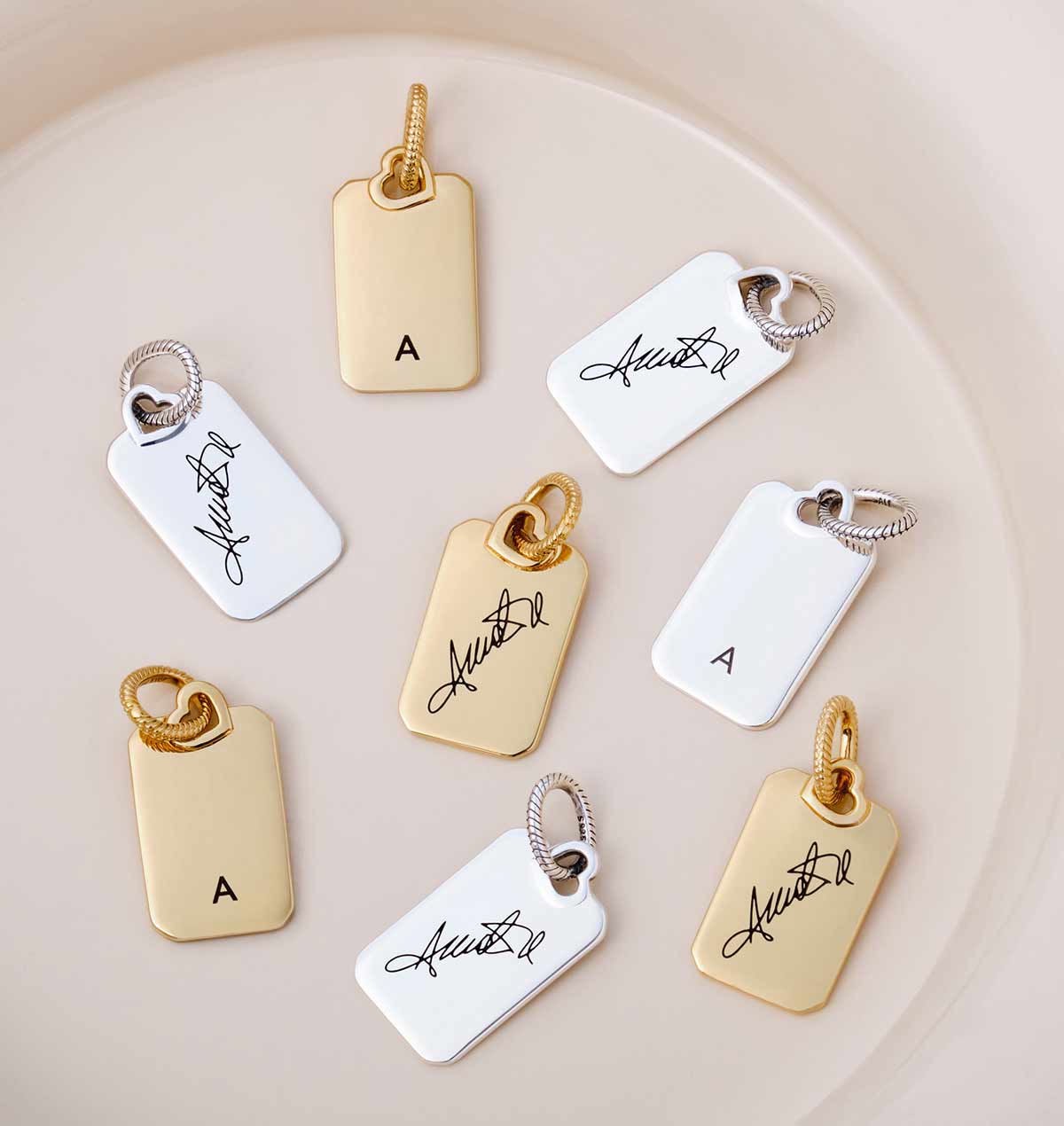 Ogni pezzo è impreziosito dall’incisione della lettera “A” sul fronte e dall’autografo di Annalisa sul retro, unito all’anello del charm da un piccolo cuore. Per un tocco ancora più personale, è possibile richiedere il servizio di incisione aggiuntiva presso i negozi Pandora.