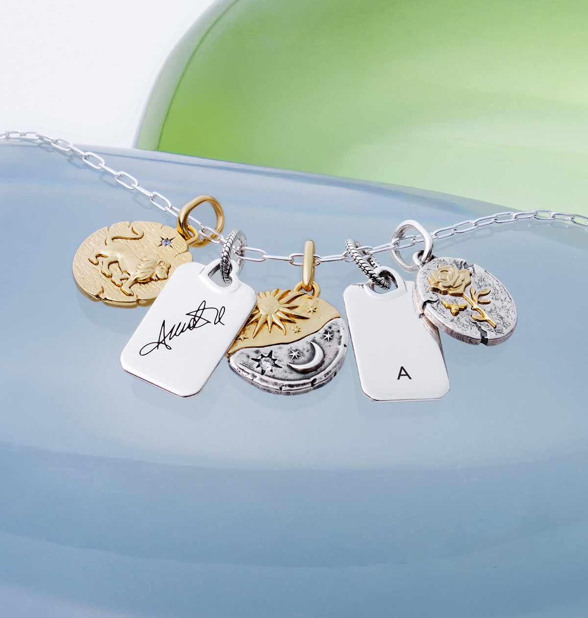 I nuovi charm si presentano come pendenti rettangolari, disponibili in Argento Sterling 925 o con finitura placcata Oro 14K.