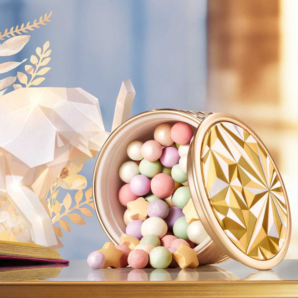Il pack tutto d’oro veste 4 referenze best seller, tra cui le iconiche Météorites e i rossetti Rouge G. Non manca poi l’amata polvere viso Terracotta, decorata per l’occasione con un sole dorato super glow.
