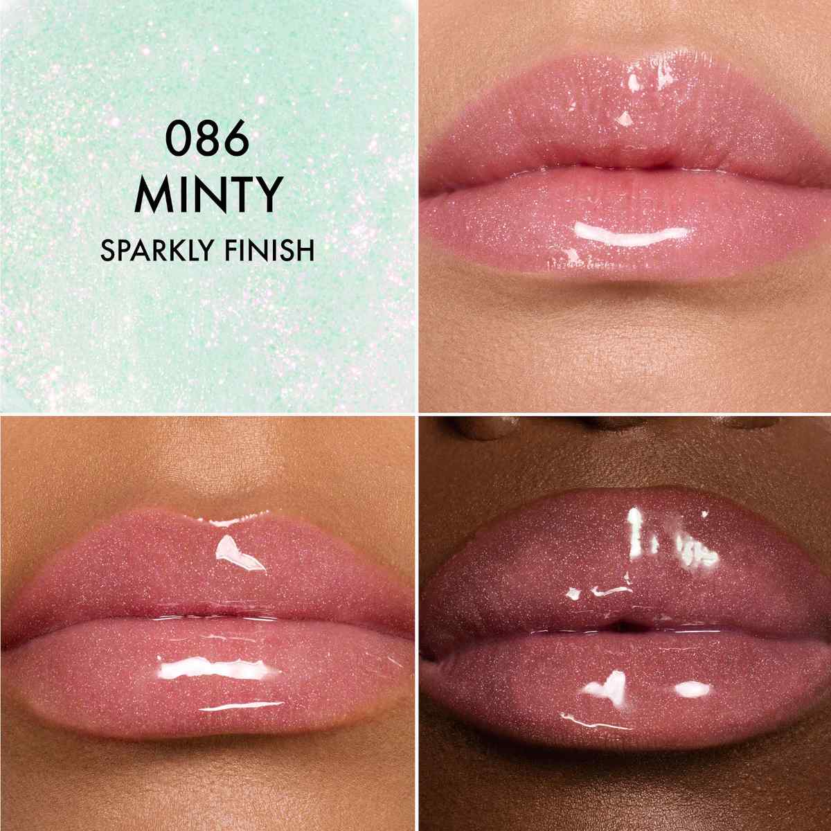 - 086 Minty, verde menta trasparente con finish sparkly glitterato.
