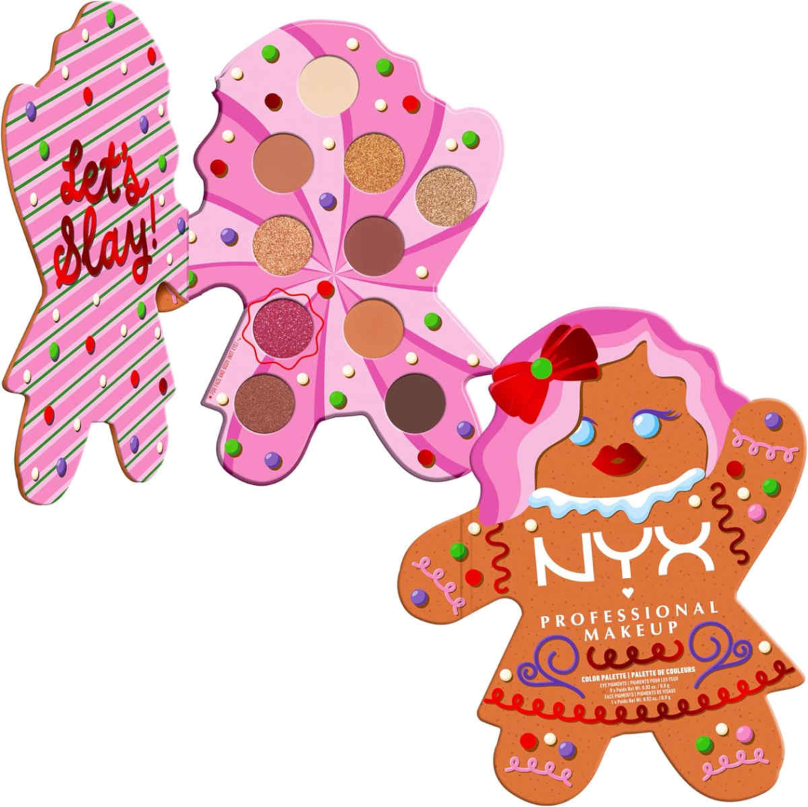 La divertentissima palette ombretti NYX Gingerbaddie è una delle più riuscite idee regalo natalizie per ragazze e ragazzine! Dal design a pan di zenzero, contiene 10 ombretti multifinish nei toni del rosa e del marrone, con cui sperimentare sempre nuovi look (disponibile qui).