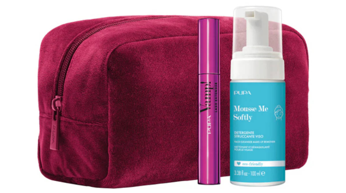 La deliziosa pochette in velluto rosso contiene due prodotti perfetti per le giovanissime di 12-13 anni che si approcciano al mondo beauty: mousse detergente e struccante e mascara Vamp! Lash Extender, a effetto extra volumizzante e allungante, di colore nero (reperibile qui).