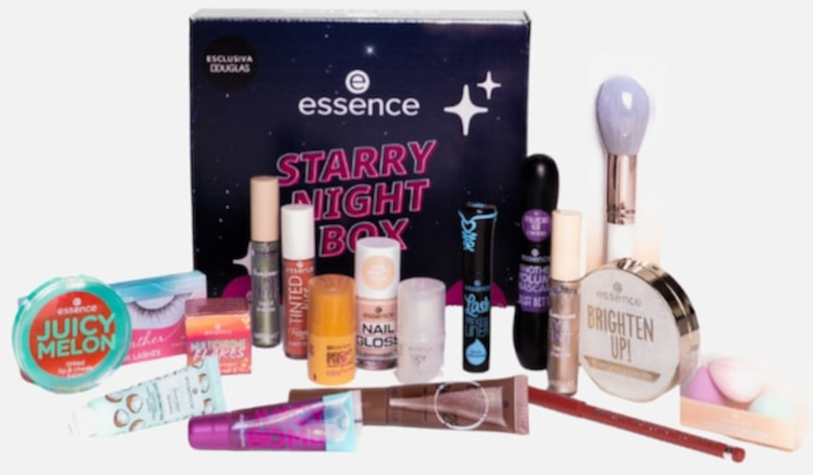 Il cofanetto Essence Starry Night è talmente ricco e fornito che vorremmo quasi tenerlo tutto per noi! Include ben 14 prodotti trucco, tra cui cipria, mascara, ciglia finte, ombretti liquidi e lip gloss, ma anche pennelli, smalti e spugnette. Un perfetto regalo mamma-figlia (reperibile qui).