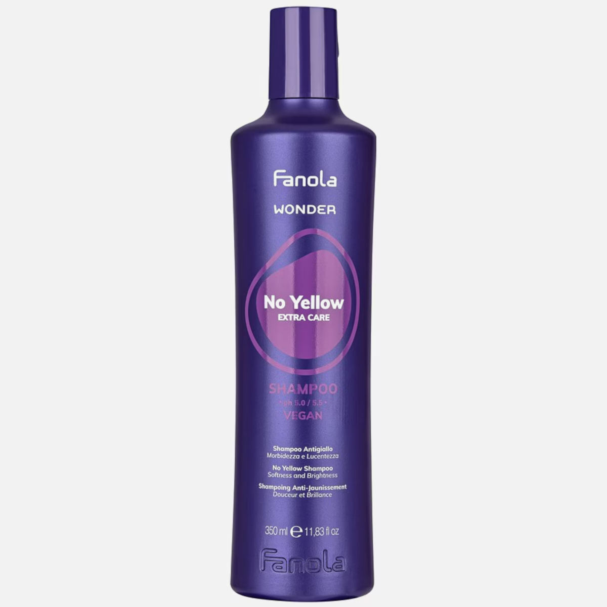 Lo shampoo antigiallo Fanola No Yellow Extra Care è una nuova versione del detergente altamente performante per capelli schiariti o decolorati, anche con mèches. Neutralizza il pigmento giallo su qualunque colore chiaro: bianco, biondo, grigio e argento. Inoltre si prende cura di cute e capelli sfibrati e rovinati.